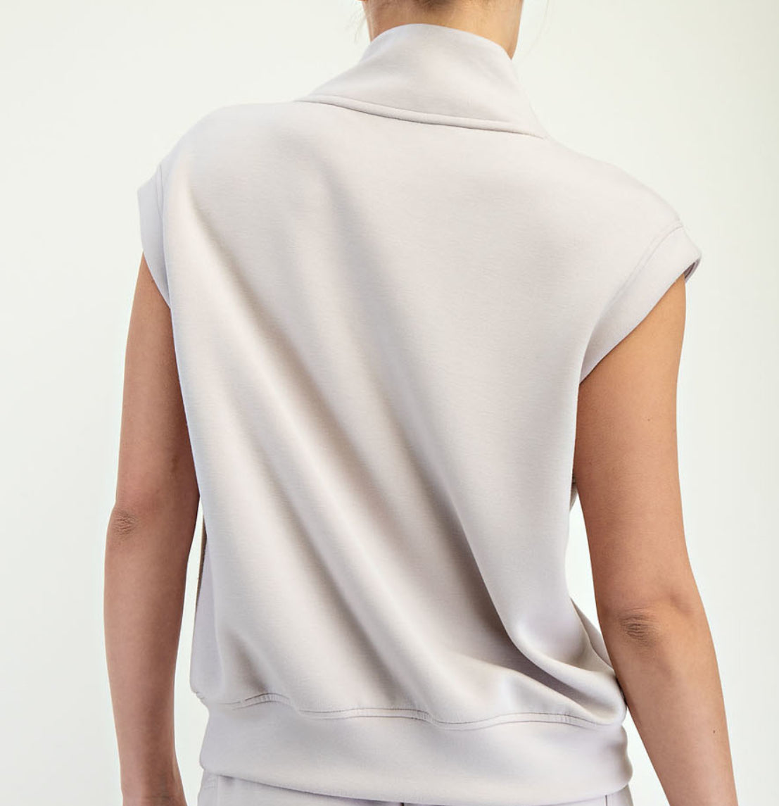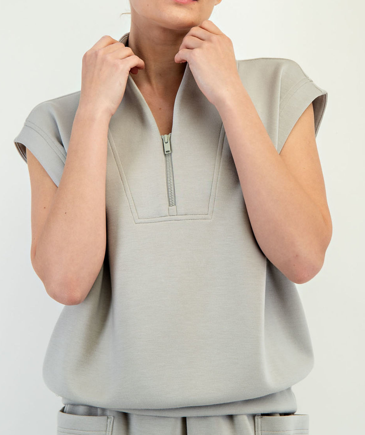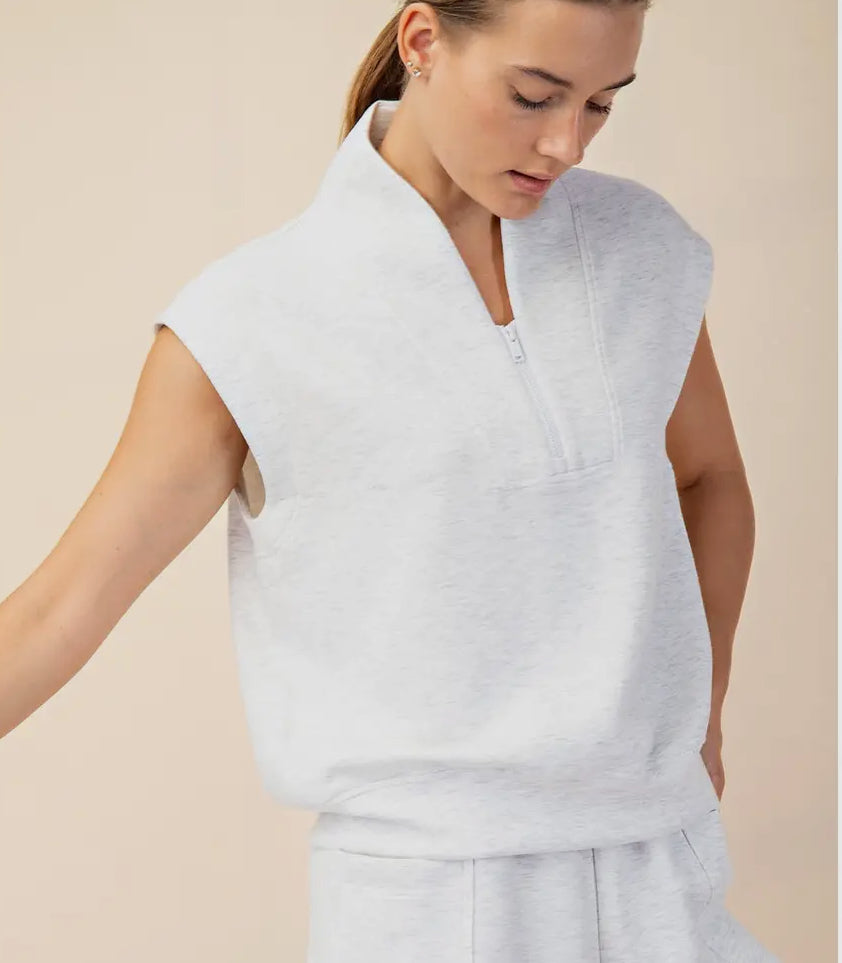 This is the softest vest ever! It comes in a light grey with zipper. It is super cute paired with our scuba joggers.